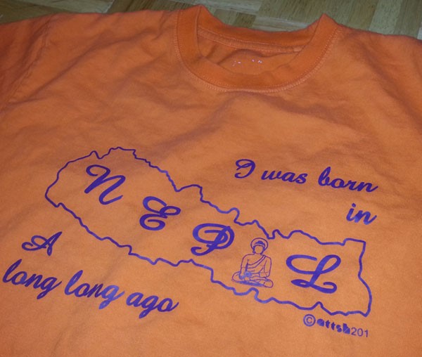 “I have a Tshirt my mom sent me from Nepal that says “I was born in Nepal a long long ago”. It is true!